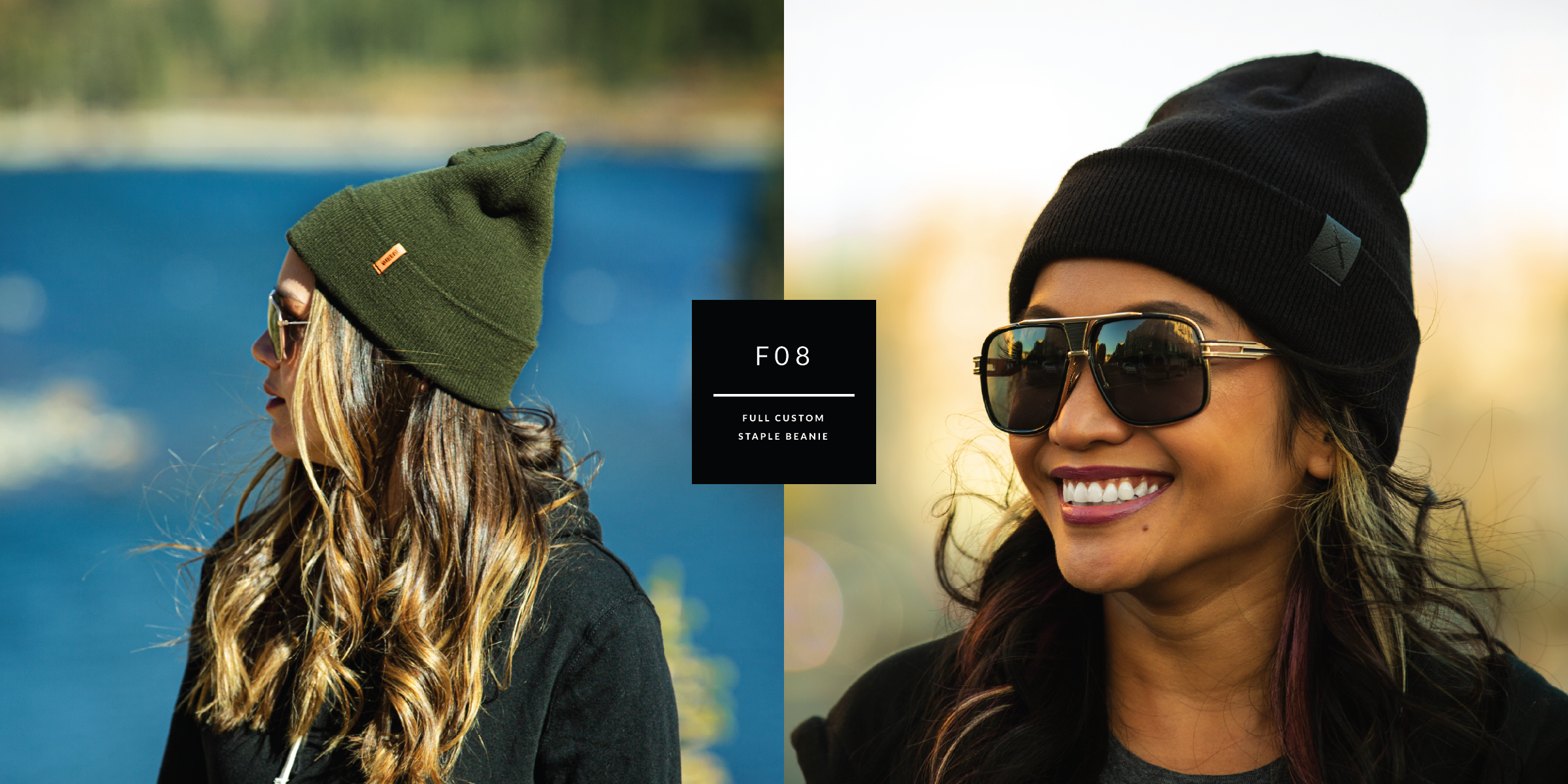 THE F08 IS A CUSTOM STAPLE KNIT BEANIE. DROP YOUR CUSTOM BRANDING ON THIS CLASSIC, FOLD UP CUSTOM BEANIE. PICK YOUR COLORS, DROP YOUR LOGO ON OUR LARGE ASSORTMENT OF DECORATION OPTIONS, CUSTOMIZE YOUR STAPLE KNIT HERE.